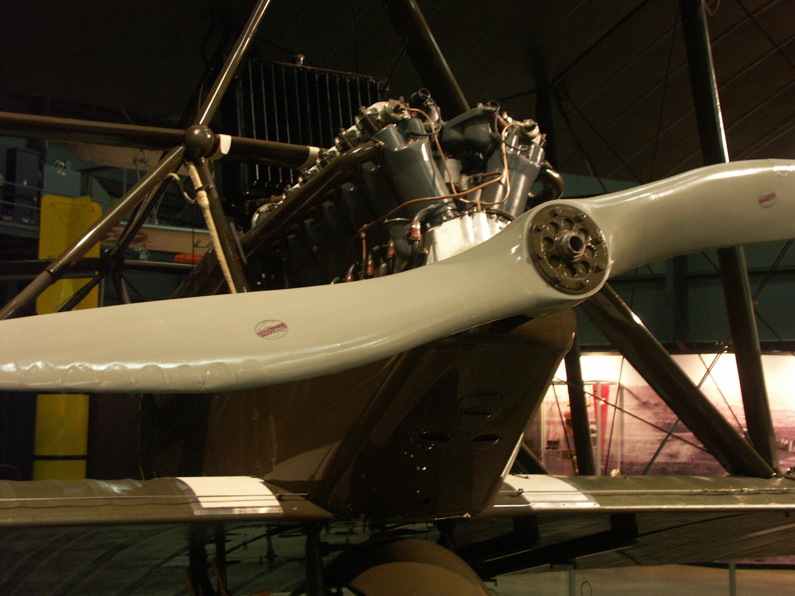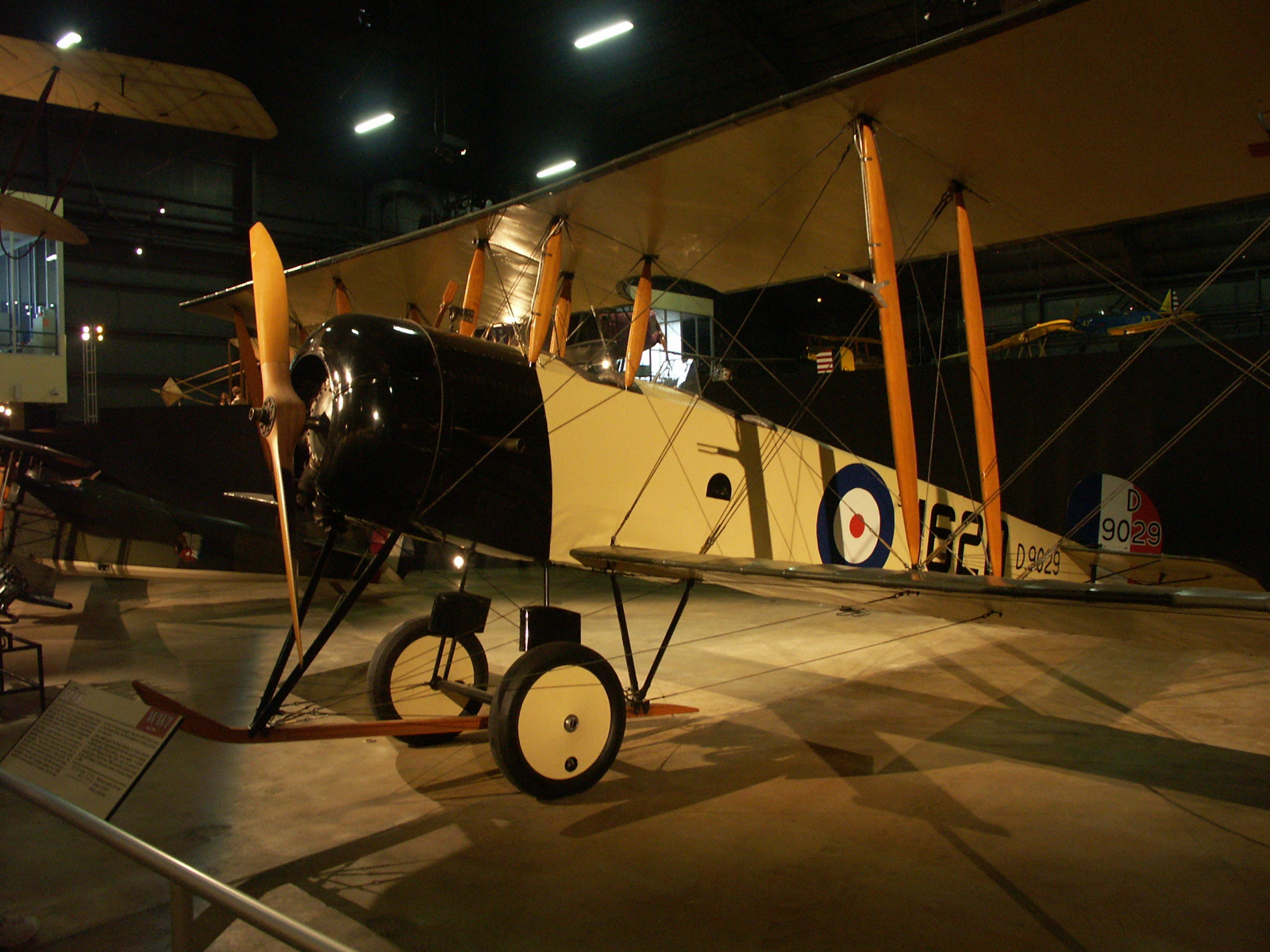 Using original parts, the Royal Canadian Air Force's Aircraft Maintenance & Development Unit built the aircraft on display in 1966-1967 with a 110-hp Le Rhone J rotary engine. It arrived at the National Museum of the U.S. Air Force in May 2003, and it is painted to represent one of the 52 Avro 504K aerobatic trainers used at the AEF No. 3 Instruction Center, Issoudun, France, in 1918.