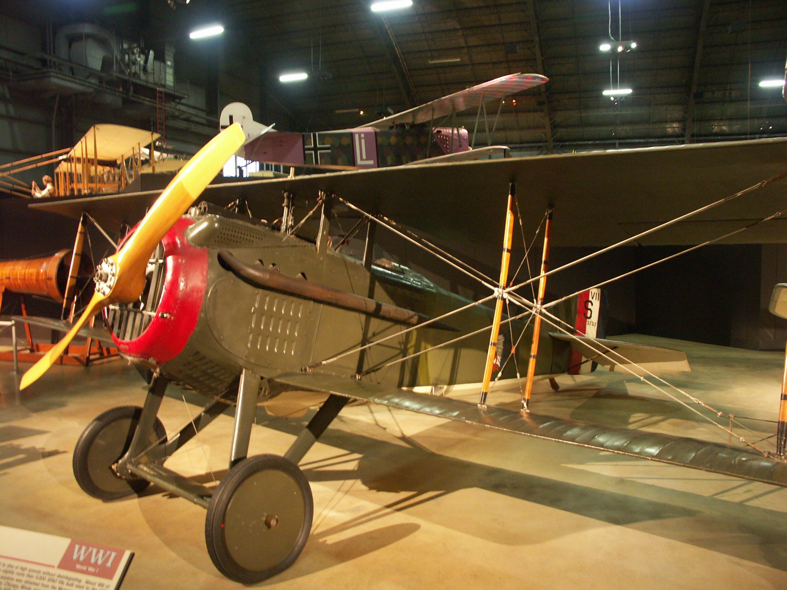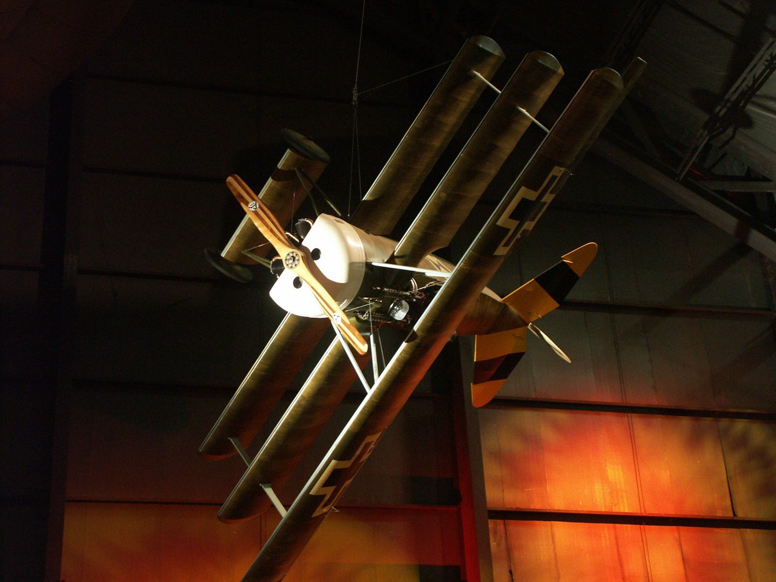 Although Fokker built a total of 320 Dr. Is, none have survived. This reproduction is painted to represent the aircraft flown by Lt. Arthur Rahn in April 1918 when he served with Jagdstaffel 19. Lt. Rahn is credited with six confirmed victories. The aircraft was placed on display in April 1994.