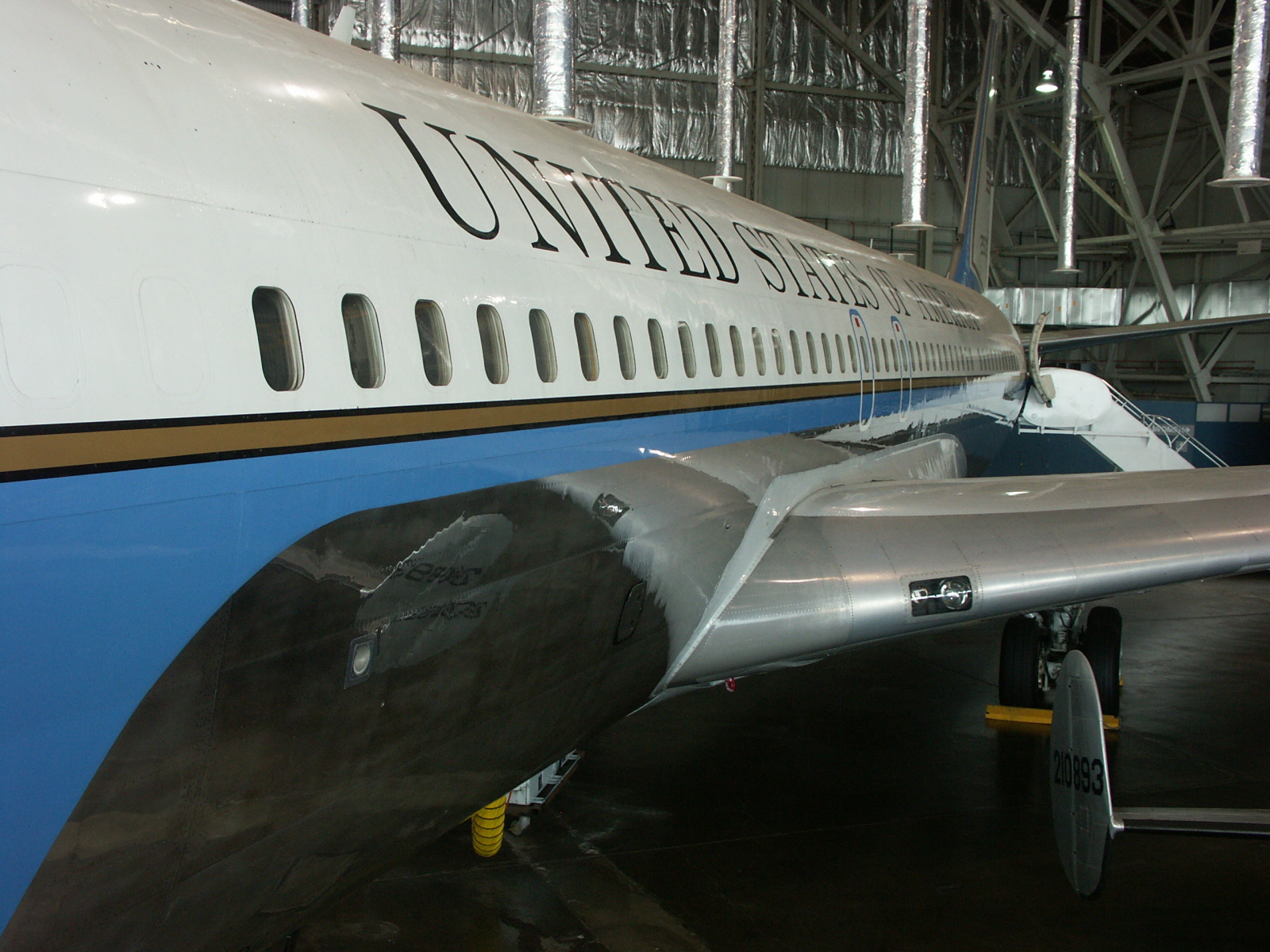 On Oct. 10, 1962, VC-137C number 26000 entered USAF service directly from the Boeing assembly line in Renton, Wash. President Kennedy had the aircraft painted in striking blue and white instead of the usual military colors to give it a distinctive look. The title "United States of America" was emblazoned on the fueselage and an American flag was painted on the tail. This aircraft carried eight presidents: Kennedy, Johnson, Nixon, Ford, Carter, Reagan, George H.W. Bush and Clinton.