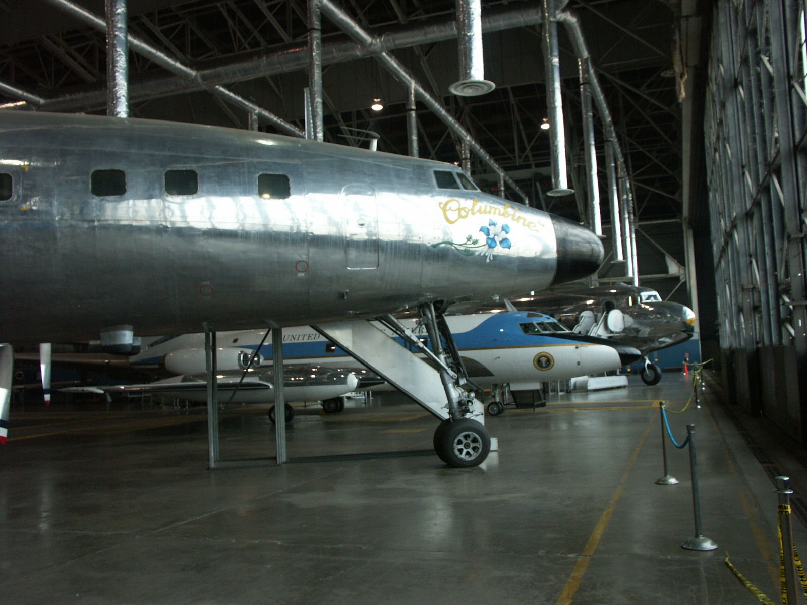 The aircraft on display, the only VC-121E built, was President Dwight Eisenhower?s personal airplane between 1954 and 1961. Mrs. Eisenhower christened it Columbine III in honor of the official flower of Colorado, her adopted home state, in ceremonies on Nov. 24, 1954. Columbine III served as the presidential aircraft until President Eisenhower left office in January 1961. It remained in service transporting government officials and visiting foreign dignitaries throughout the world until it was retired to the museum in 1966.