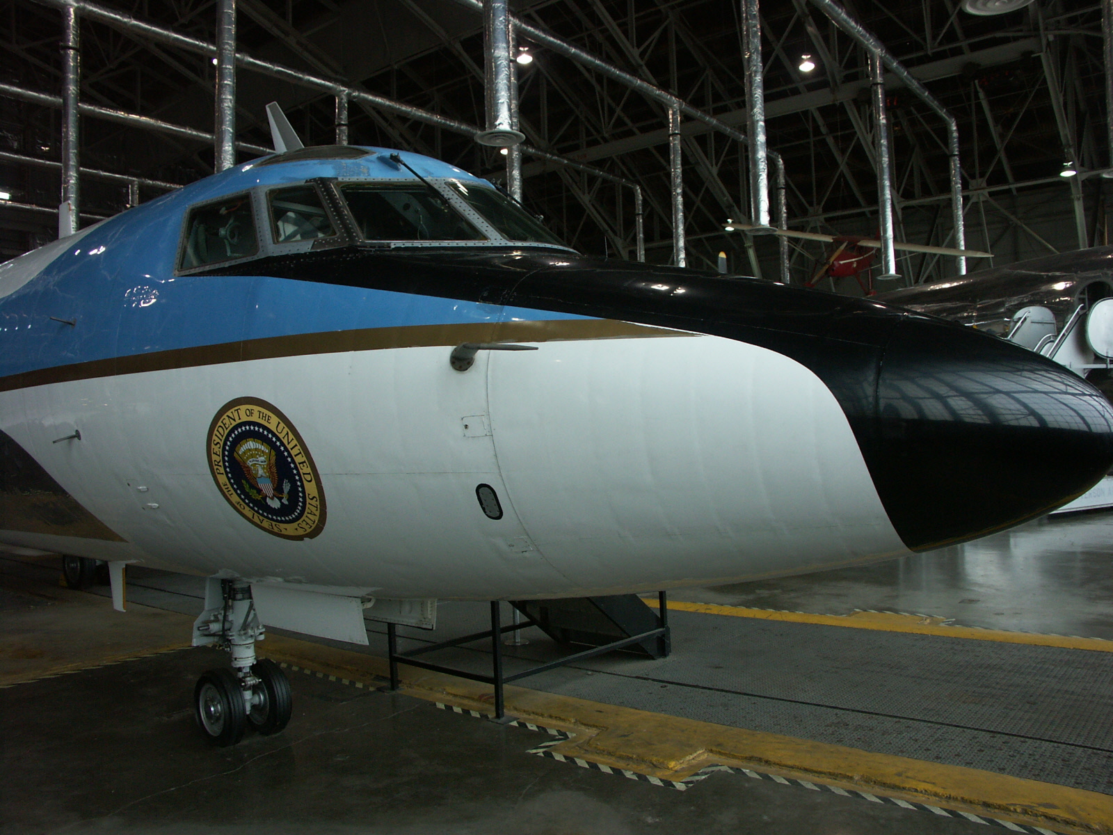 The VC-140B on display carried Presidents Richard Nixon, Gerald Ford, Jimmy Carter and Ronald Reagan a number of times, although it was not the primary presidential aircraft. Whenever the President was aboard, it flew under the radio call sign Air Force One. This Jet Star ended its 26 years of service when it was flown to the museum on July 16, 1987.