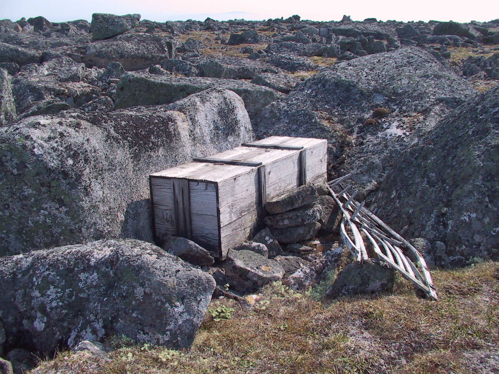 These bones are from a bowhead whale head, complete with some skin. There are lots of these around the island.
