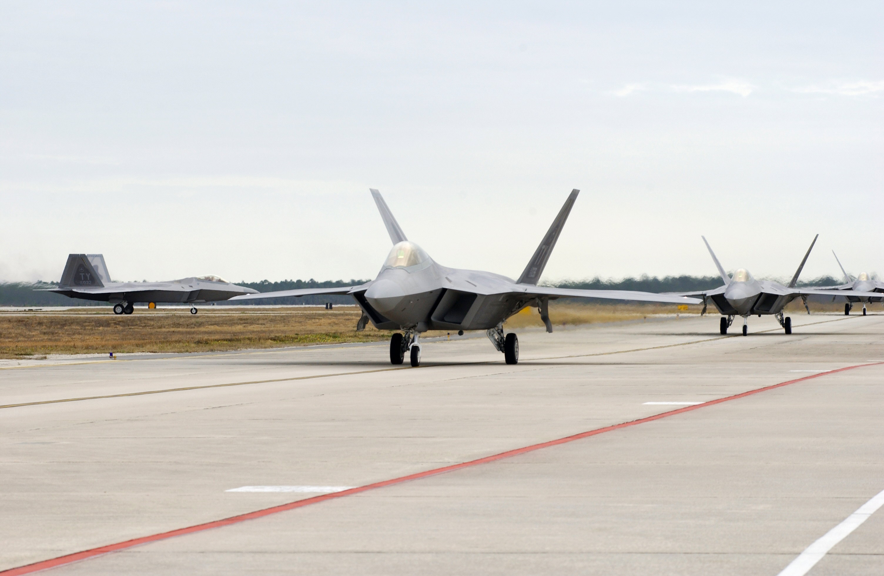 FA/-22 Raptor tailnumber 0015 taxis on the Nellis Air Force Base flight line on Wednesday, July 9th, 2003. The Raptor was flown to Nellis from the factory by Maj. David Thole, an operational test pilot from the 422nd Test and Evaluation Squadron. This brings the number of F/A-22's at Nellis to four. USAF Photo by: Tech. Sgt. Kevin J. Gruenwald ld