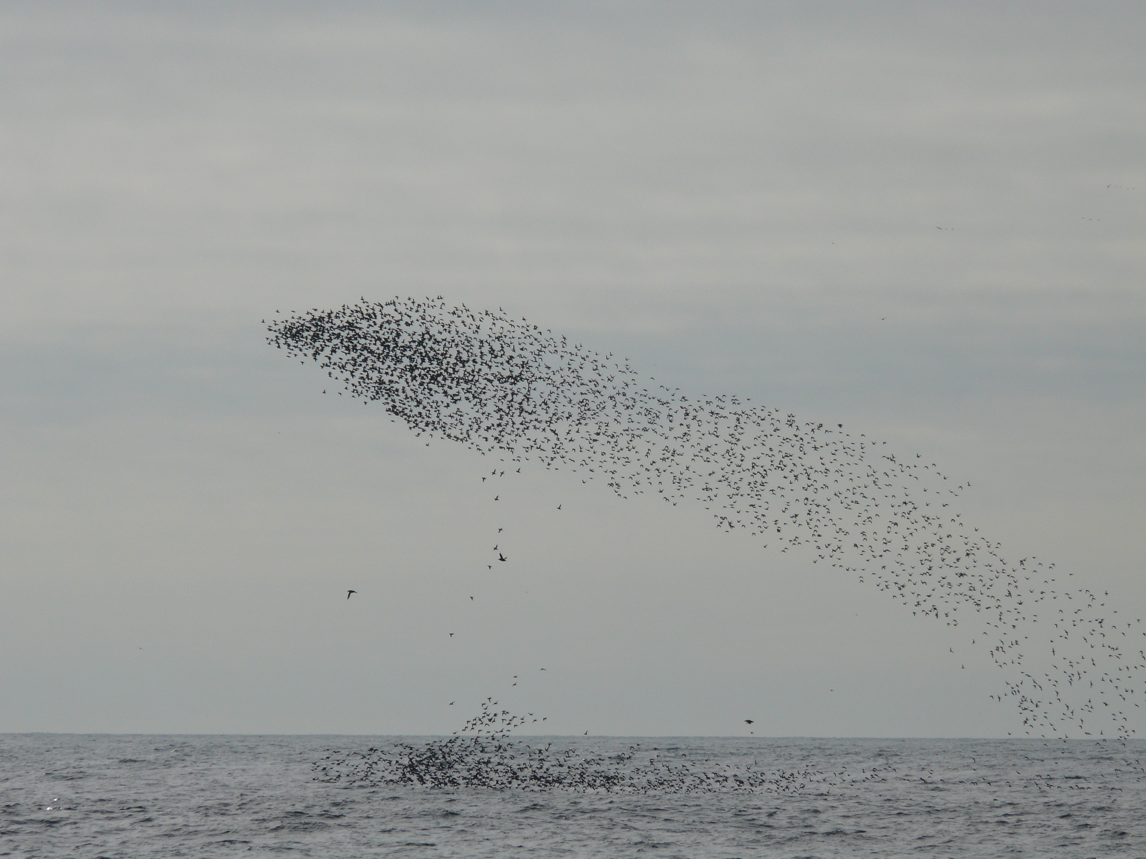 The birds would fly around in a flock like this and then dive into the water, underwater, either to eat something or because they like swimming. Kaniuji Island.