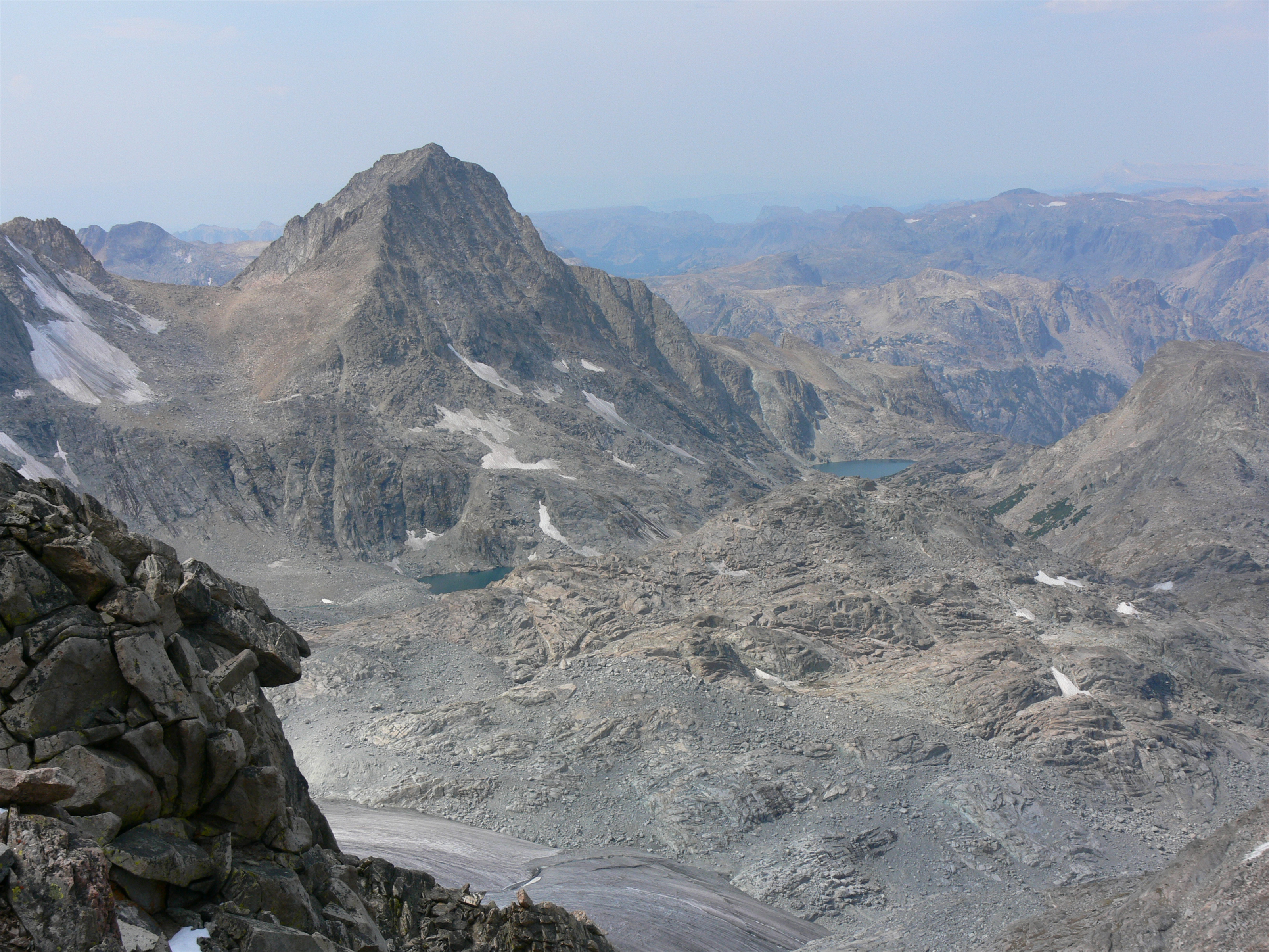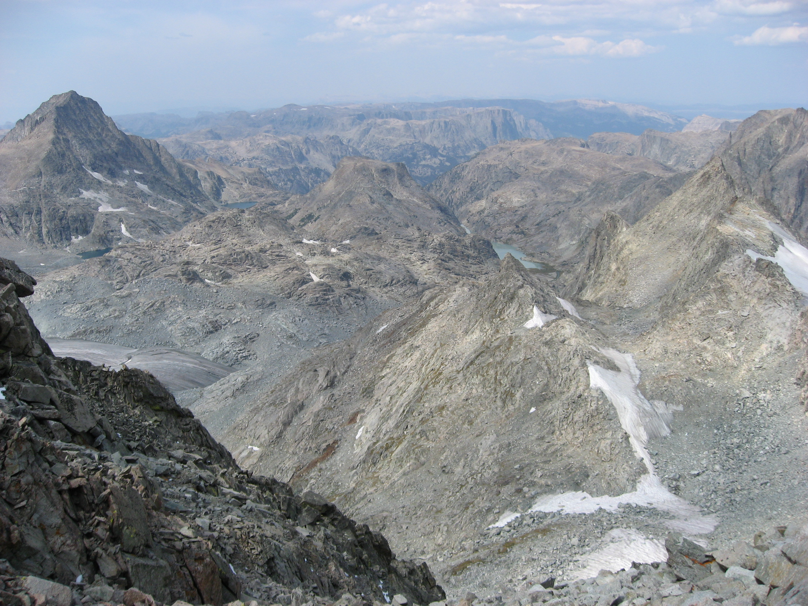 The view west, from the left shoulder of Gannett Peak. This is where I chickened out.