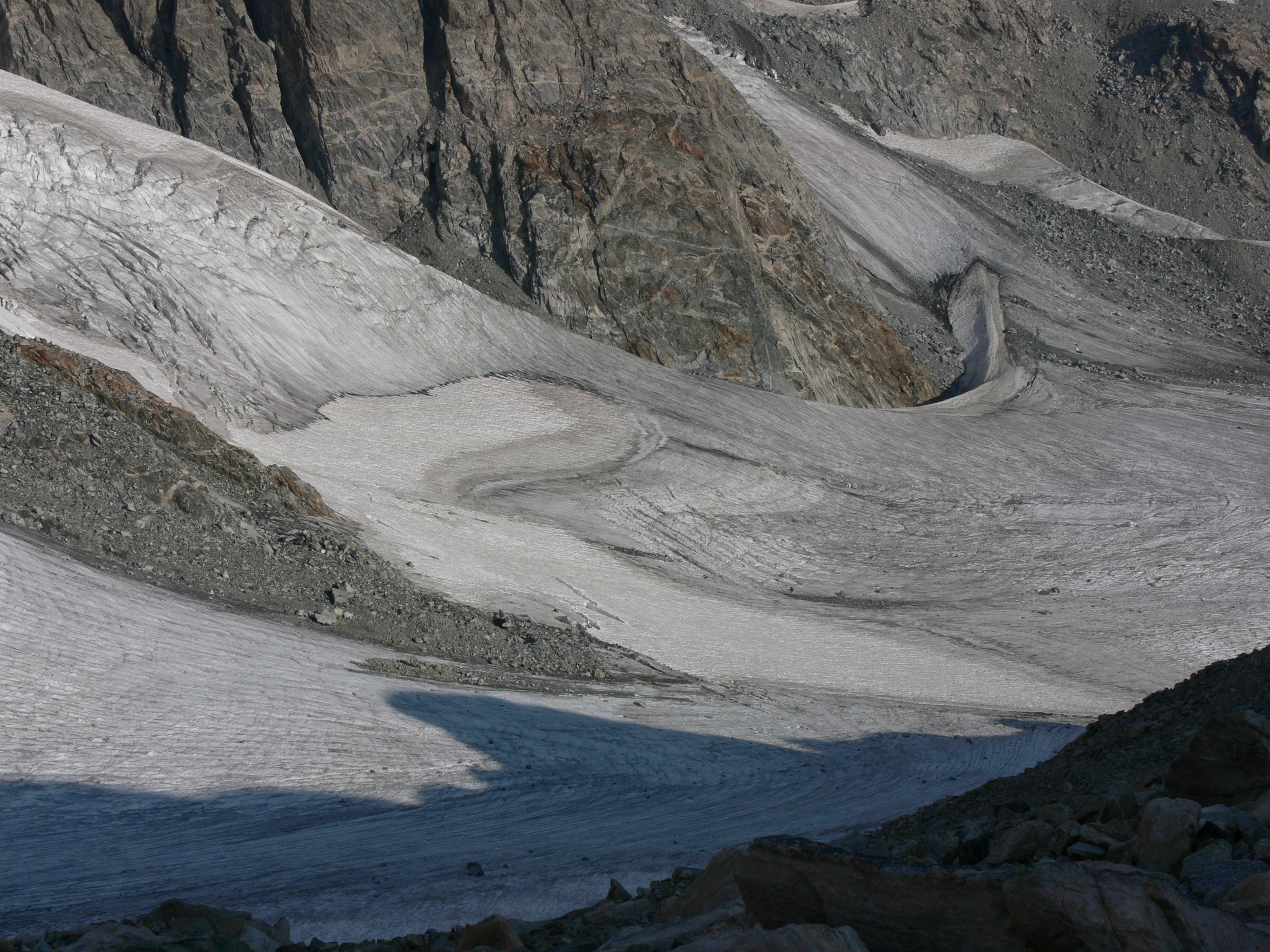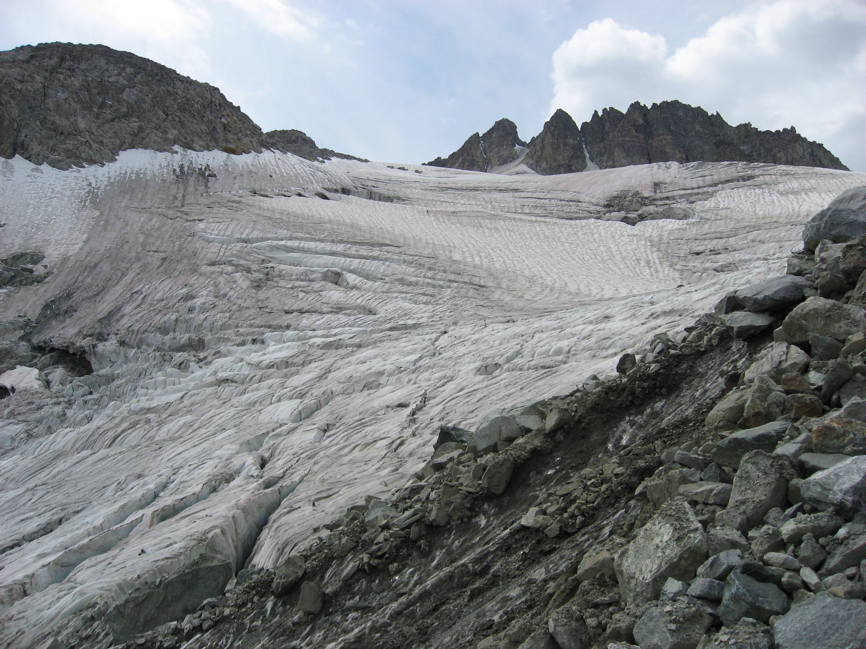 This is the rough part of the Gooseneck Glacier. I negotiated the crevices on the way up. I took the rocks on the way down. I didn't like either route.